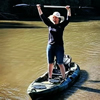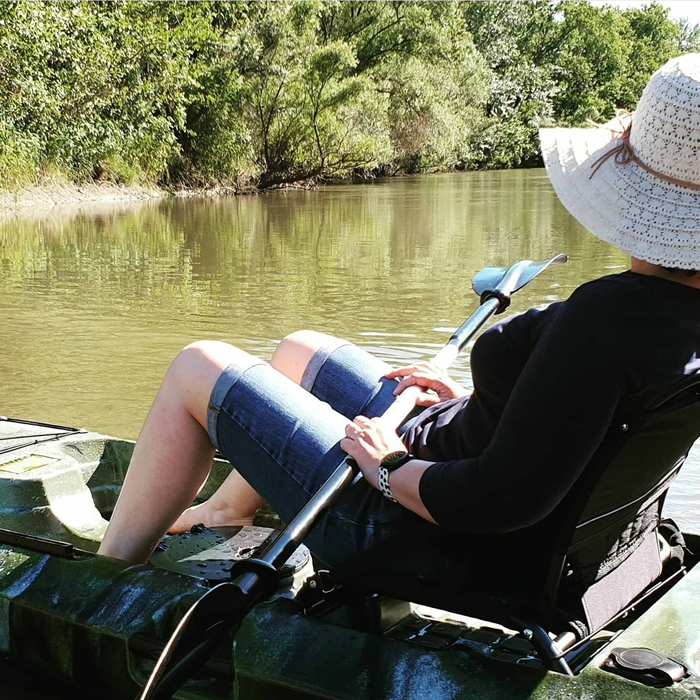 - Ha vízbe borultál: Kapaszkodj meg a horgászkajak oldalában (a kajakon a hordozófülben), és használd ki, hogy képes a vízen fenntartani. Az evezőt a csónak tetejére teheted, vagy valamelyik gumipók alá fogathatod, hogy ne zavarjon az úszásban. Kezdj el úszni a part felé, és bár folyó esetében eközben a folyásirányba is haladni fogsz, képes leszel kiúszni kajakostól a partra. Tapasztaltabb kajakosok természetesen visszamászhatnak a horgászkajakba, ahogyan ez a bemutató videó is szemlélteti.